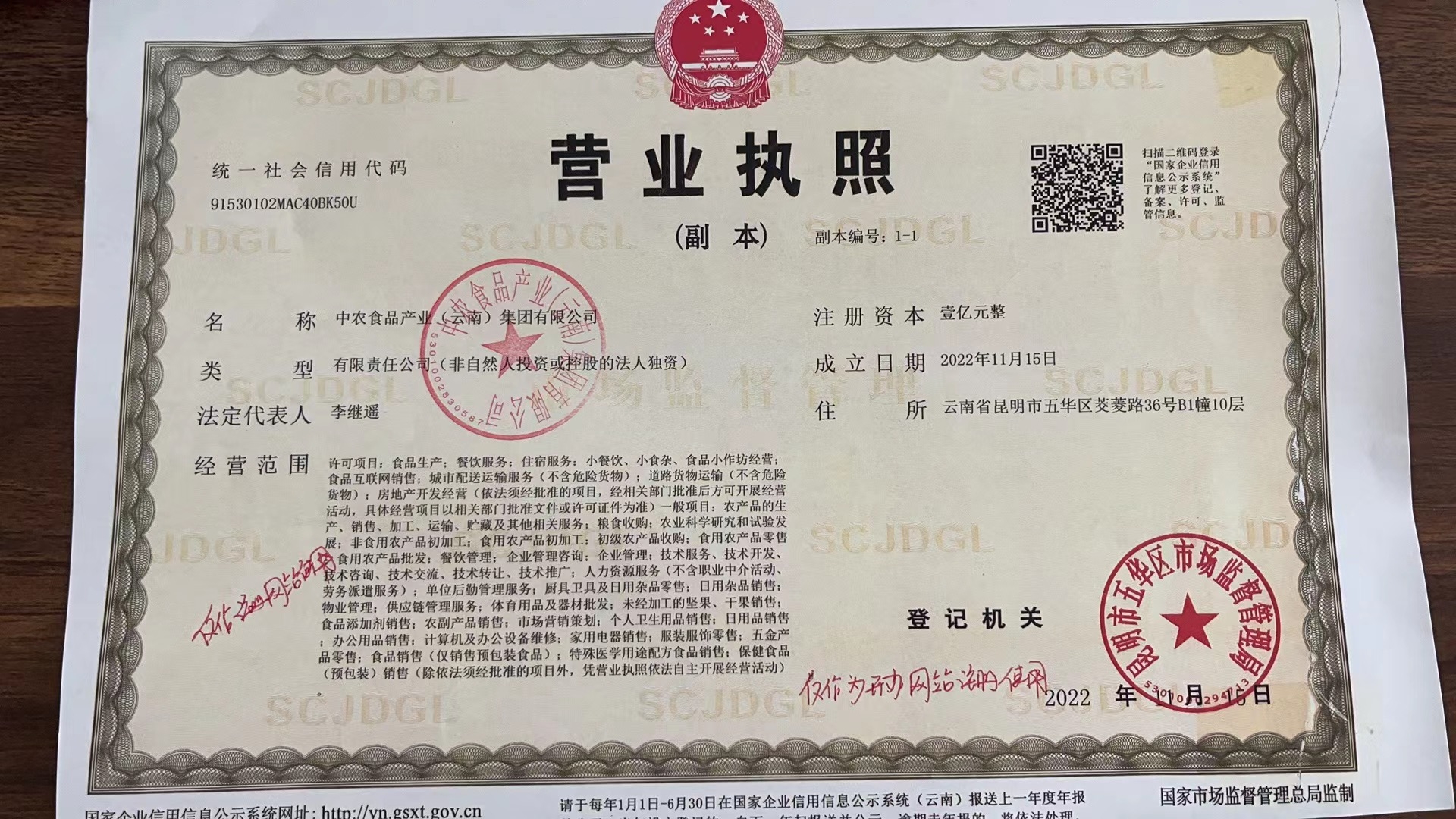 中農(nóng)食品產(chǎn)業(yè)(云南)集團(tuán)有限公司成立于2022年11月15日,注冊(cè)地位于云南省昆明市五華區(qū)茭菱路128號(hào)B1棟10層。經(jīng)營(yíng)范圍包括糧食收購(gòu)、銷售;飼料加工銷售、糧油機(jī)械、農(nóng)副產(chǎn)品的銷售;農(nóng)業(yè)技術(shù)開發(fā)與技術(shù)推廣;養(yǎng)殖場(chǎng);酒店管理;農(nóng)業(yè)信息咨詢;倉(cāng)儲(chǔ)服務(wù)。中農(nóng)食品產(chǎn)業(yè)(云南)集團(tuán)有限公司對(duì)外投資企業(yè)有4家。民以食為天,中農(nóng)糧食儲(chǔ)備庫(kù)員工時(shí)刻謹(jǐn)記著確保糧食顆粒歸倉(cāng)...